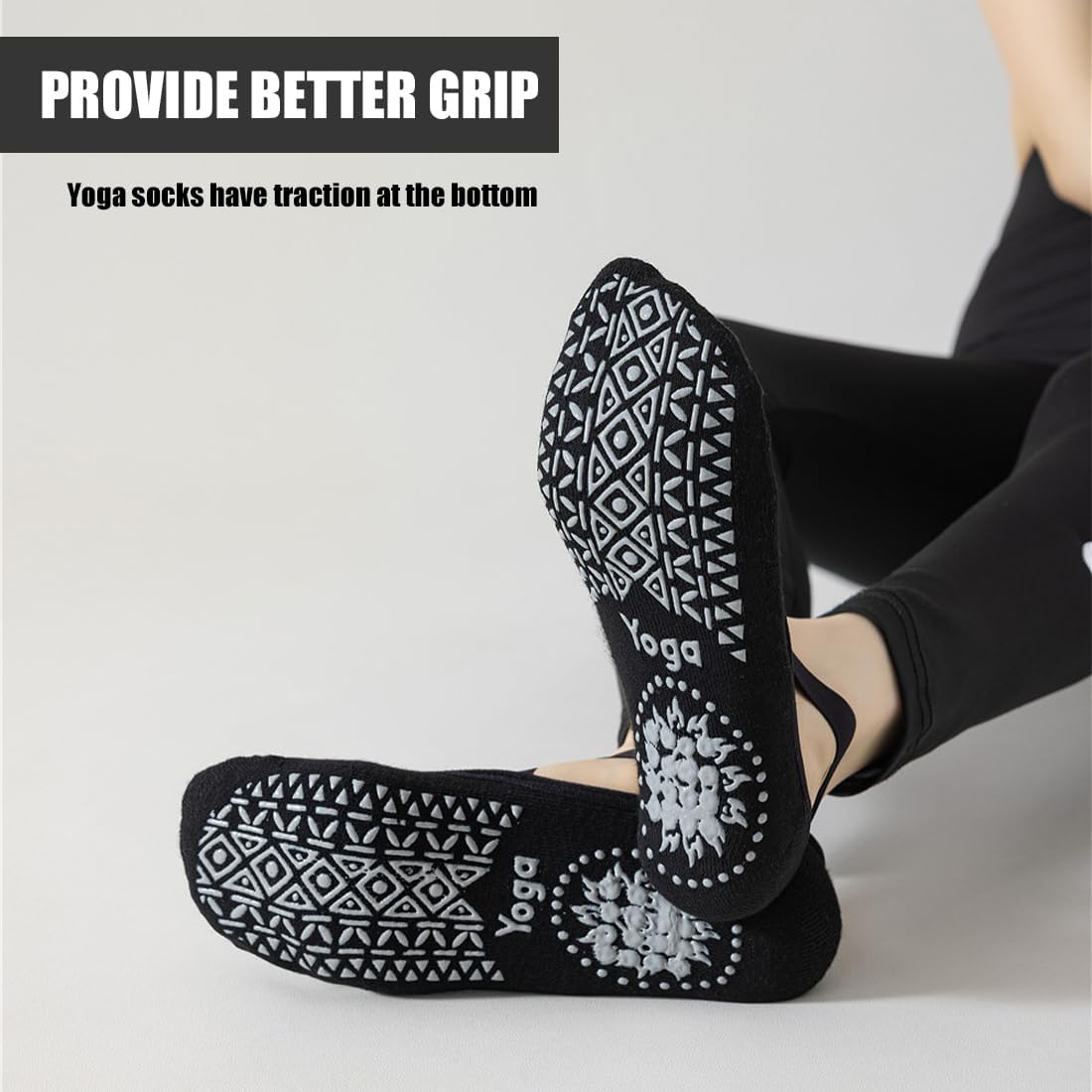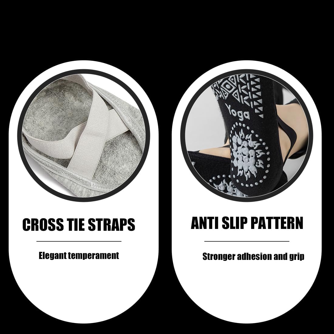 Diseño cruzado: las correas cruzadas de los calcetines de yoga antideslizantes se pueden estirar para envolver mejor los pies, evitar caídas durante el entrenamiento prolongado y mejorar el equilibrio y la estabilidad. Puede adelgazar tus pies en movimientos de baile y movimientos de entrenamiento