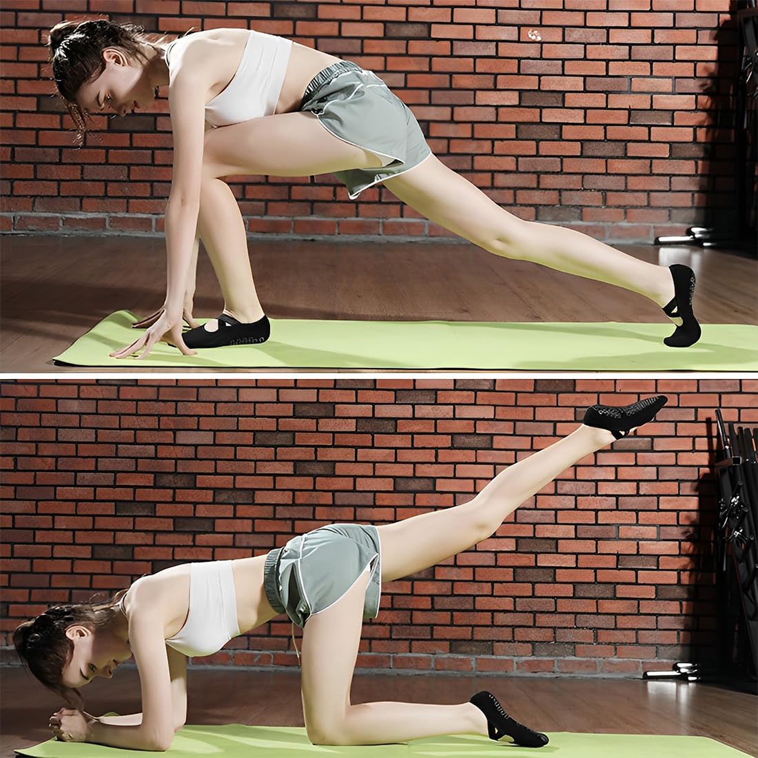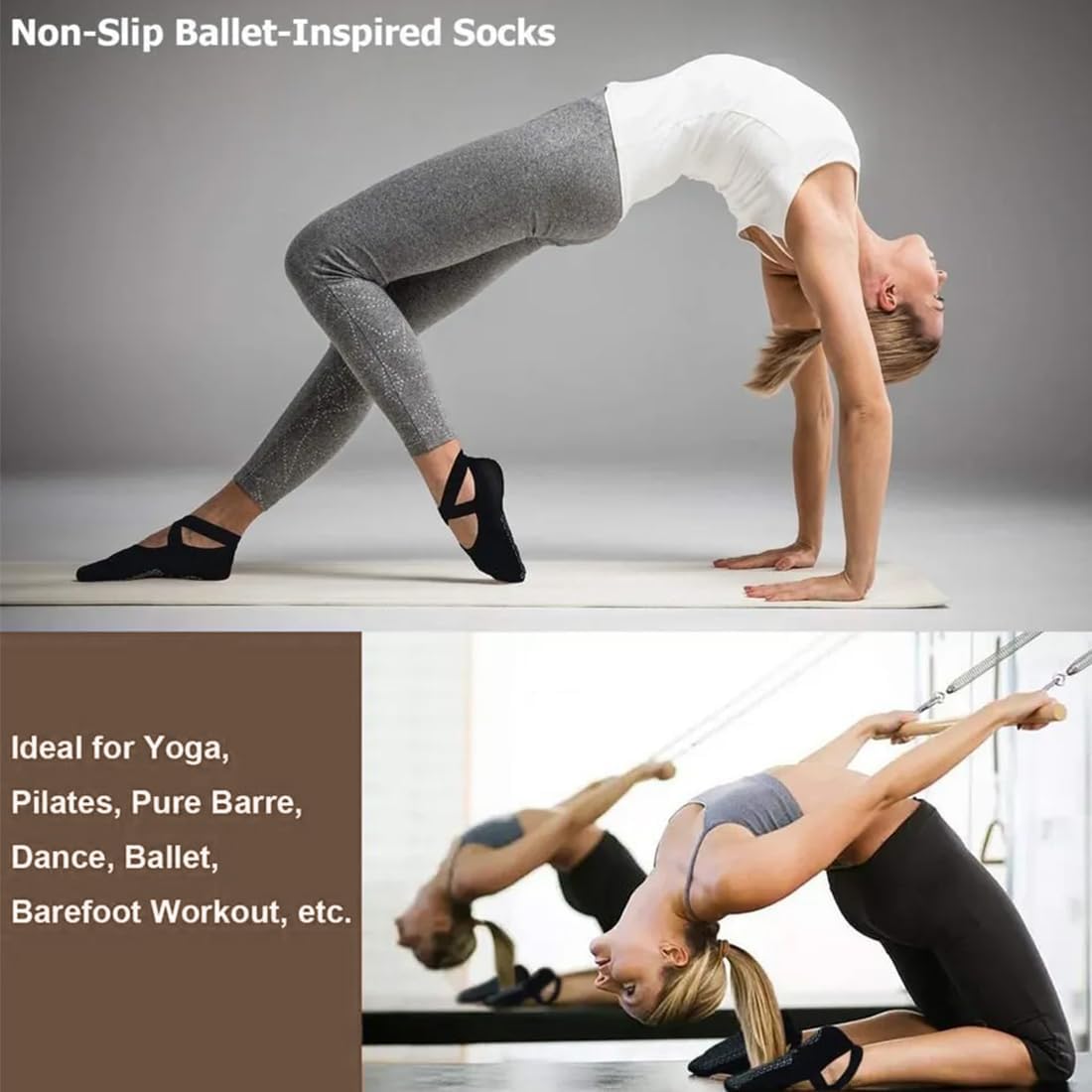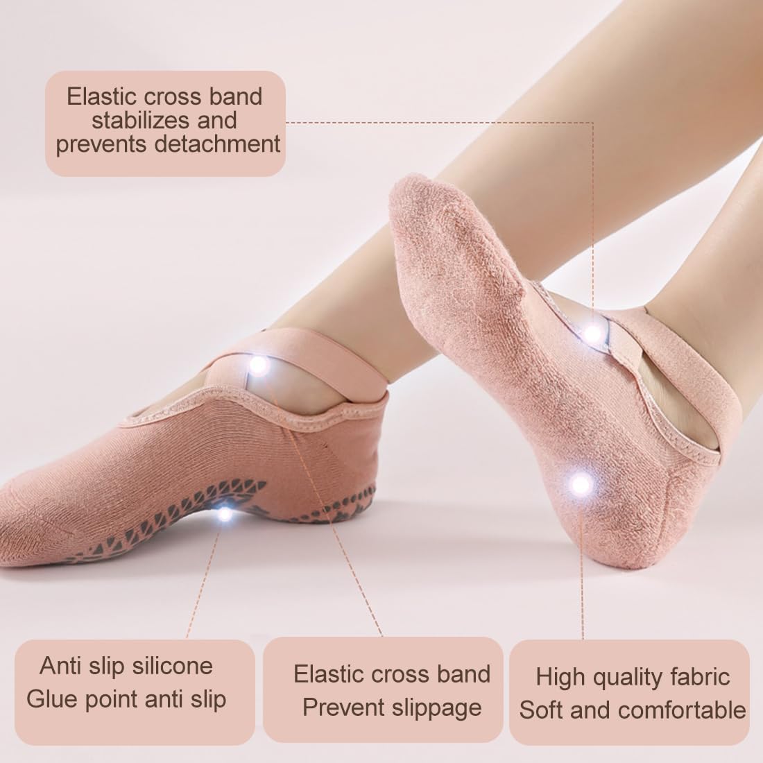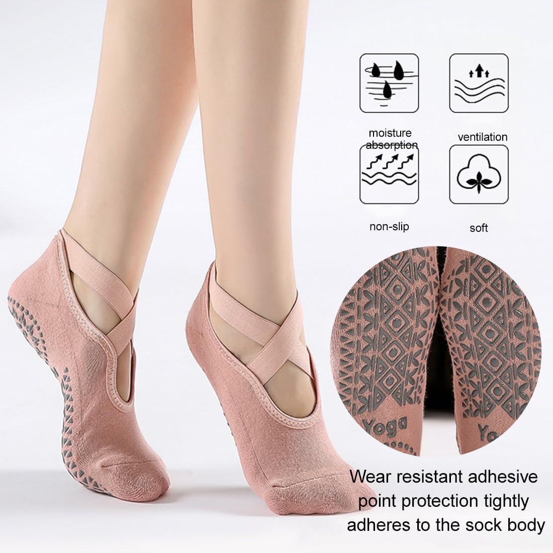 Diseño cruzado: las correas cruzadas de los calcetines de yoga antideslizantes se pueden estirar para envolver mejor los pies, evitar caídas durante el entrenamiento prolongado y mejorar el equilibrio y la estabilidad. Puede adelgazar tus pies en movimientos de baile y movimientos de entrenamiento.