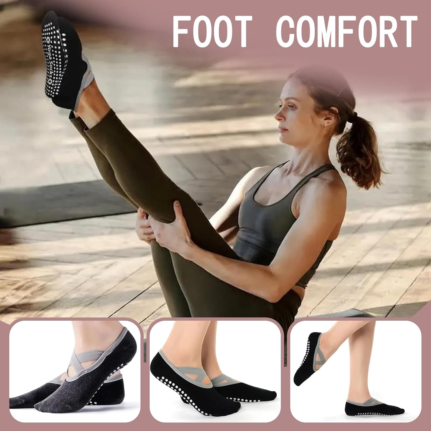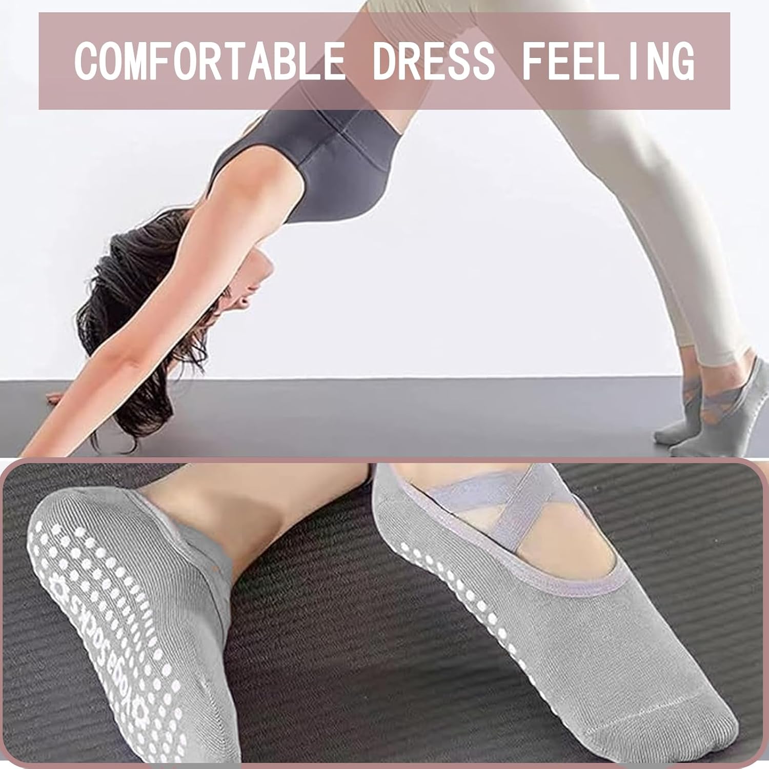 Diseño entrecruzado: la parte posterior de los calcetines de pilates para mujer está hecha de un tejido elástico entrecruzado que se estira fácilmente para envolver perfectamente tus pies, independientemente del tamaño o la forma de tus pies. Así podrás evitar que se resbalen y caigan después de horas de ejercicio, y podrás mantenerte elegante y bella mientras haces deporte o bailas.