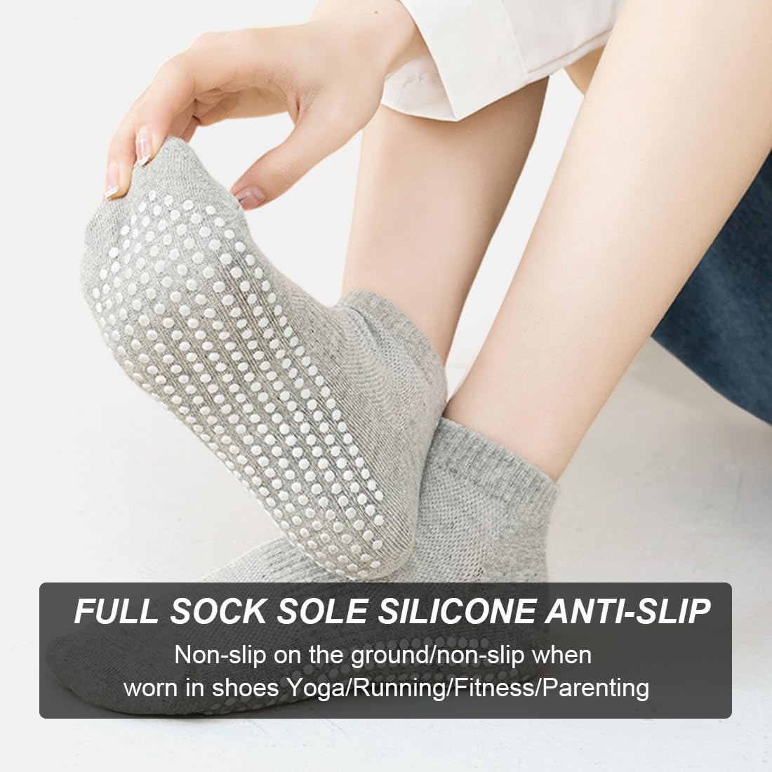 DISEÑO ANTIDESLIZANTE: Los puntos antideslizantes en la parte inferior de estos calcetines de yoga antideslizantes ayudan a aumentar el agarre en las superficies del piso, evitando resbalones en una variedad de superficies, incluidas esteras de yoga, alfombras, pisos de madera y baldosas.