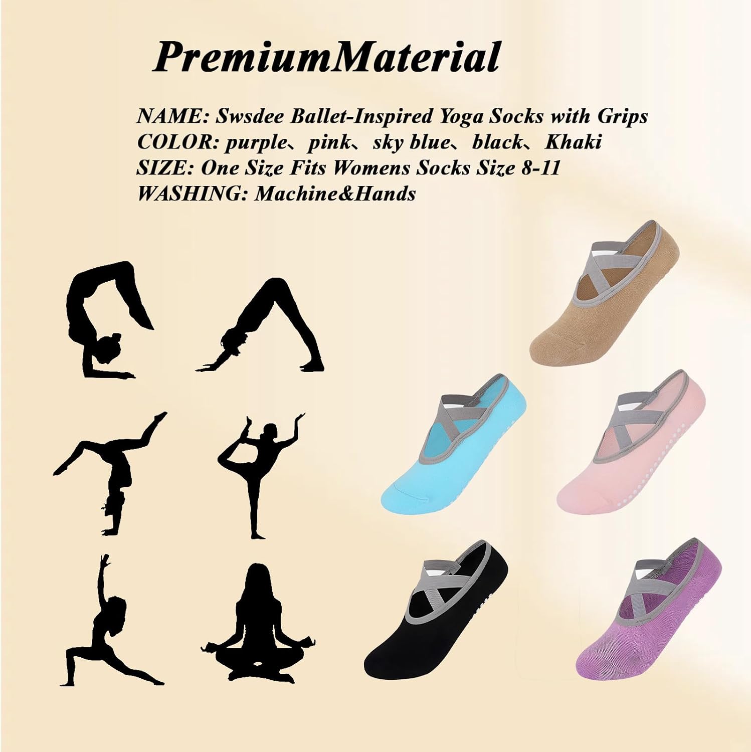 5 Pares Calcetines De Yoga Calcetines Antideslizantes, Pilates Calcetines Antideslizantes Mujer Pour Yoga, Pilates Calcetines Antideslizantes,Para Pilates, Danza, Fitness