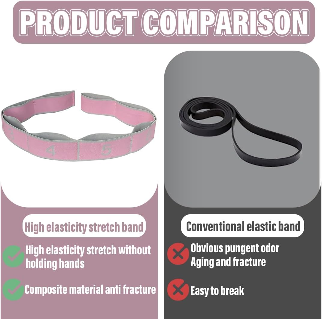 Material duradero: la correa de bandas de fitness para estiramiento de yoga está hecha de nailon de alta calidad, hilo de látex incorporado, altamente elástico, bandas de fitness de baile elásticas y cómodas para una mayor durabilidad.