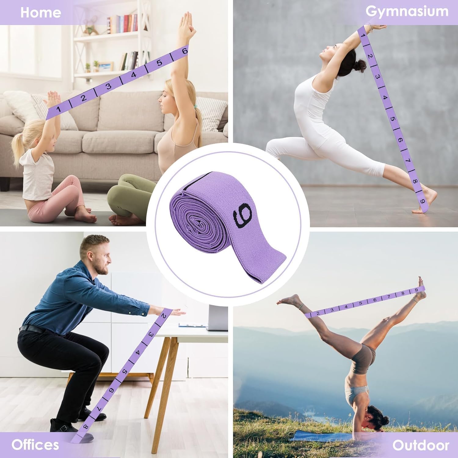 【Multifuncional Stretch Band】Es perfecto para baile latino, gimnasia, entrenamiento de cuerpo completo, pilates, yoga, ballet, calentamiento, etc. La elasticidad adecuada es adecuada para muchos propósitos de fitness, como sentadillas, empujes de cadera, abducciones y aducciones, gimnasia de playa, etc.