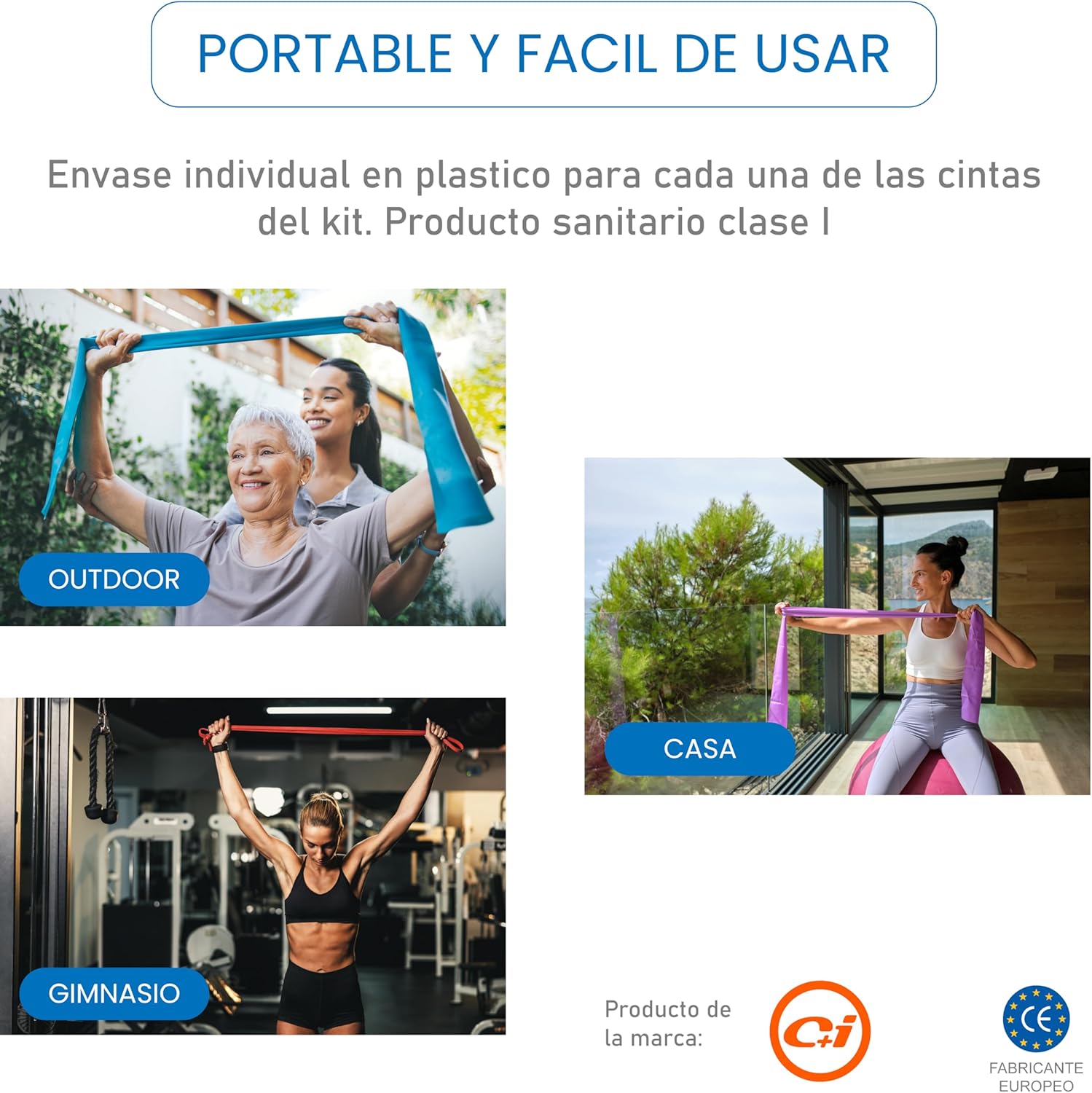 Bandas de resistencia latex free y de alta durabilidad. Además el producto cuenta con marcado CE.