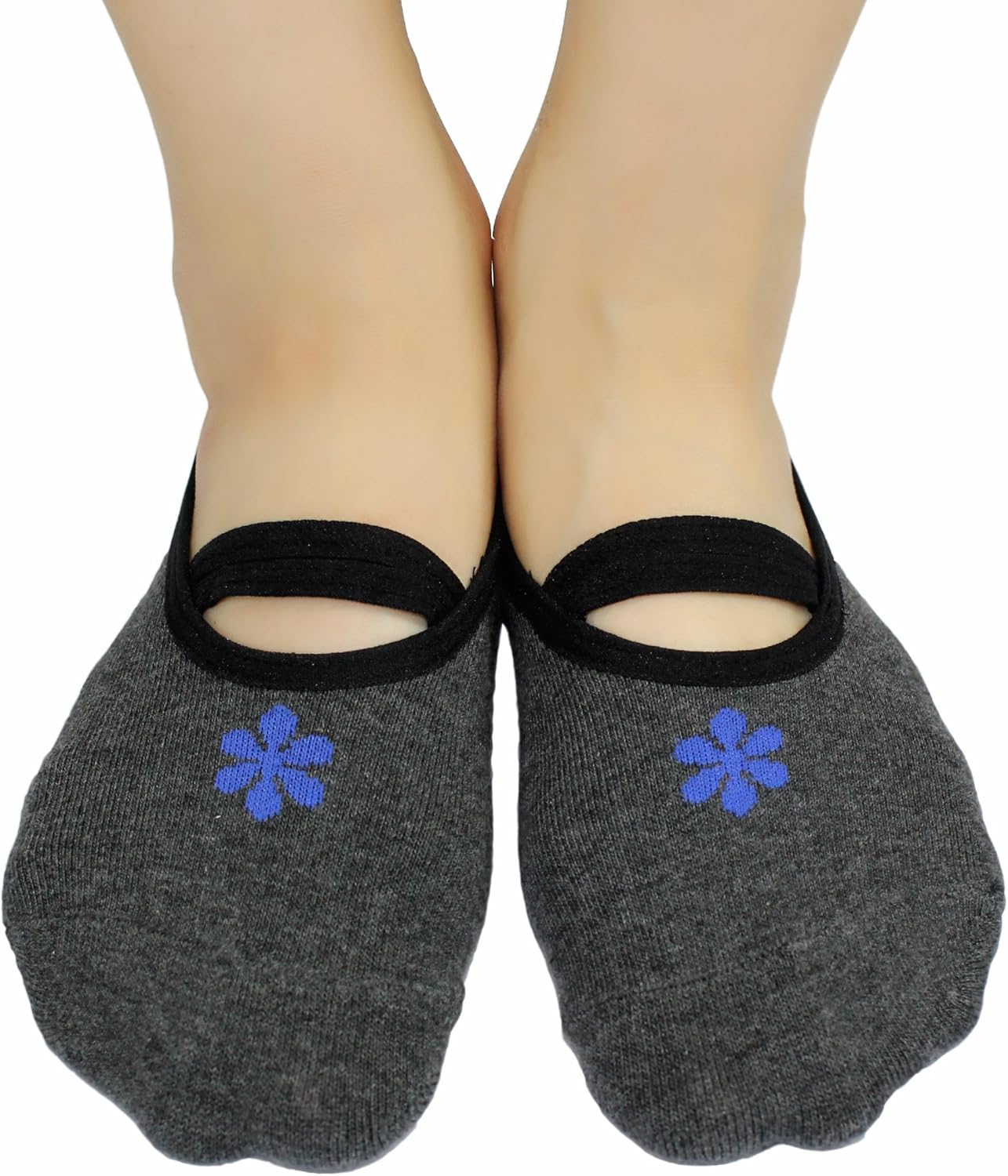 Jasmine Silk – Yoga, Pilates, Artes Marciales, Fitness, Danza, Barre, Antideslizante, Caídas Prevención Grip de Calcetines Grip Calcetines de algodón para Mujer (Gris)