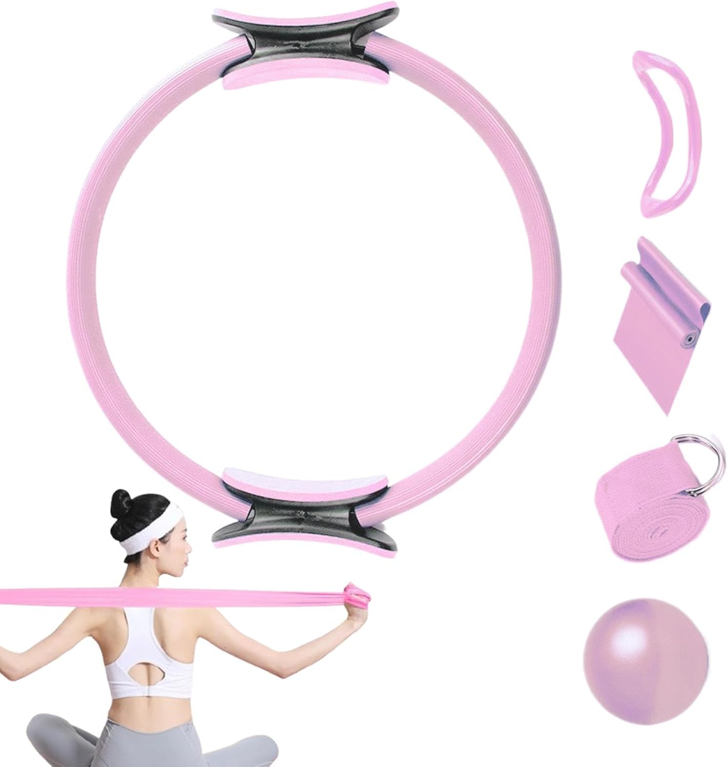 Juego Anillas Pilates, Kit De 5 Piezas Para Mujer,aro Yoga Doble Asa, Aro Y Pelota Pilates,banda Resistencia Con Cinturón Estiramiento, Colchonetas Yoga,equipo De Entrenamiento,accesorios Gimnasio En