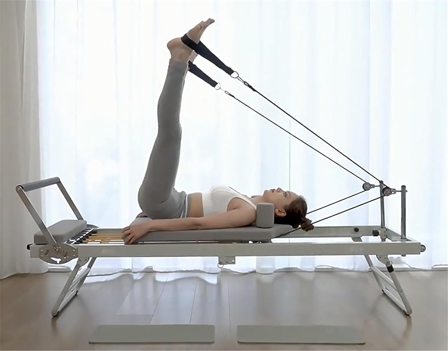 Ajustable: con una barra para pies polea silenciosa con 3 configuraciones de altura y longitudes de cuerda ajustables, esta máquina de Pilates Core ofrece una amplia capacidad de ajuste para satisfacer las preferencias individuales y diferentes intensidades de entrenamiento. Adecuado para personas con una altura de hasta 1,8 m.