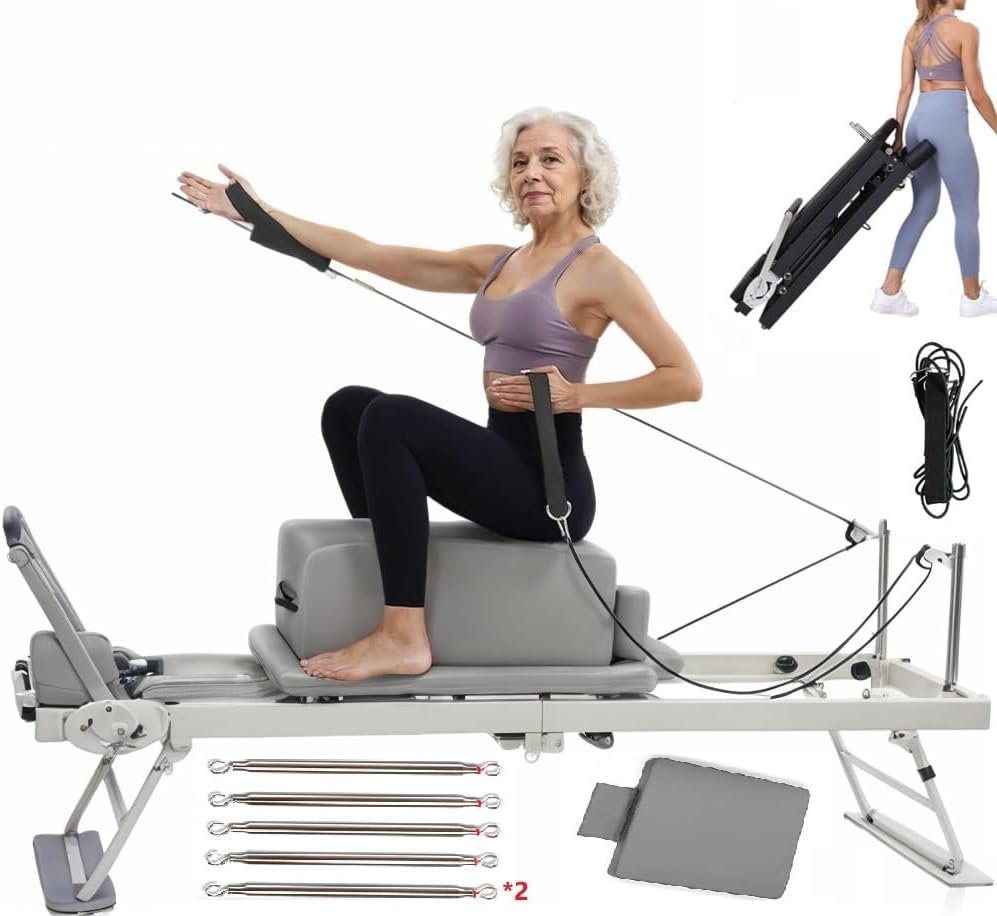 WFGI Máquina reformadora de Pilates Plegable, Equipo reformador de Pilates para Entrenamientos en casa, máquina reformadora portátil para Personas Mayores Ejercicio de Equilibrio y Escultura
