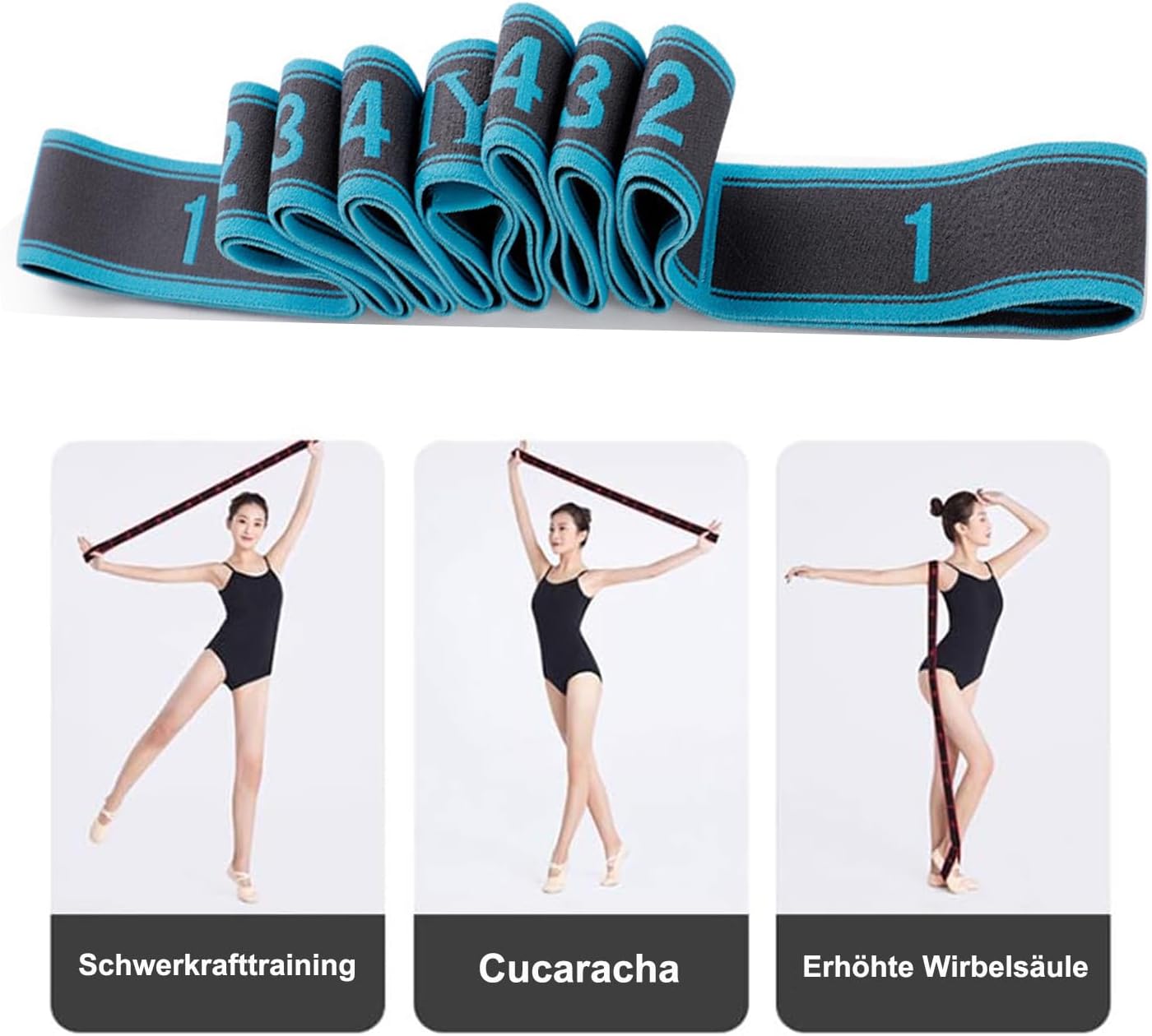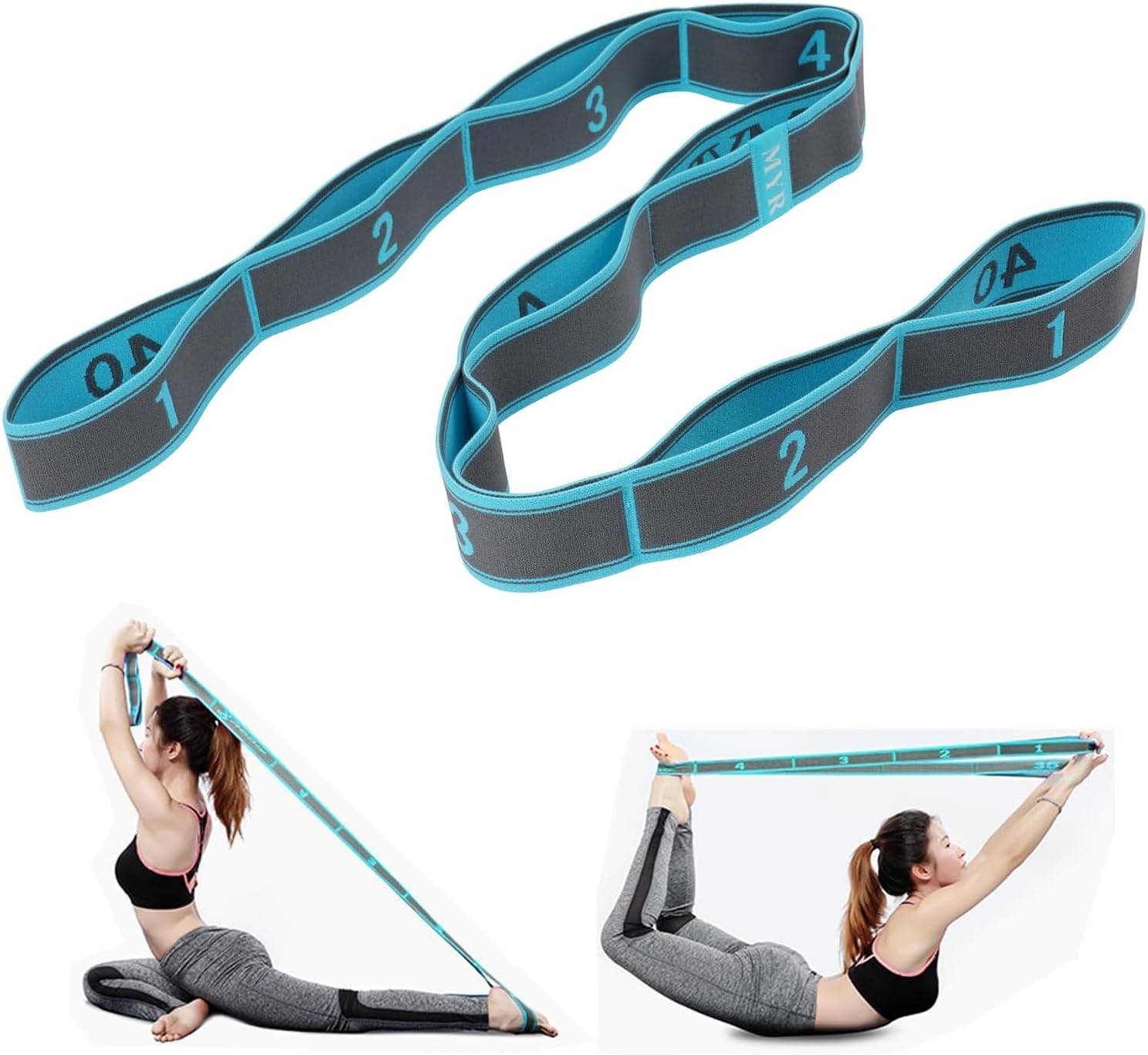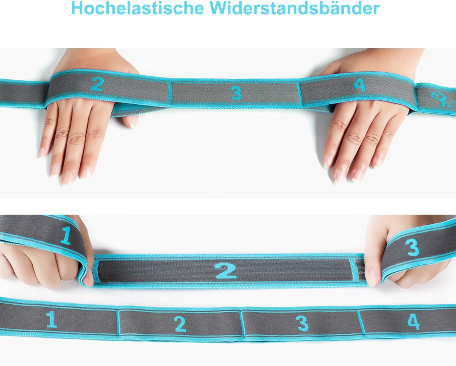 Yoga Stretch Gurt, Stretching Band Fitnessband mit 9 Schleifen, verstellbare Übungsband Fitnessbander für Fitness, Pilates, Tanztraining, Gymnastik